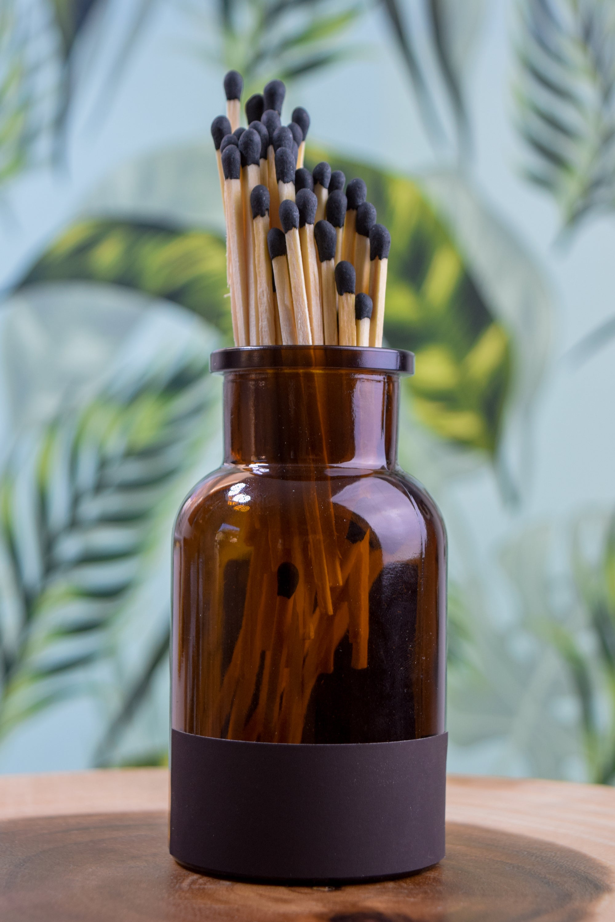 Black Safety Matches in Jar - Strike On Bottle Glass Jar 3" Inch Matchsticks