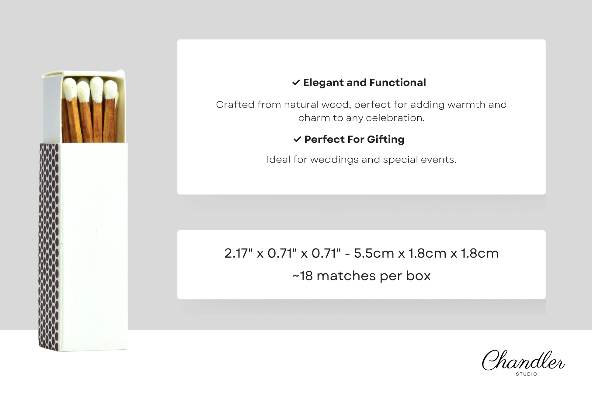 Introducing our premium matchboxes, the perfect addition to your candle lighting needs and beyond. Designed with both functionality and aesthetics in mind, our matchsticks stand out for their superior quality and thoughtful design.