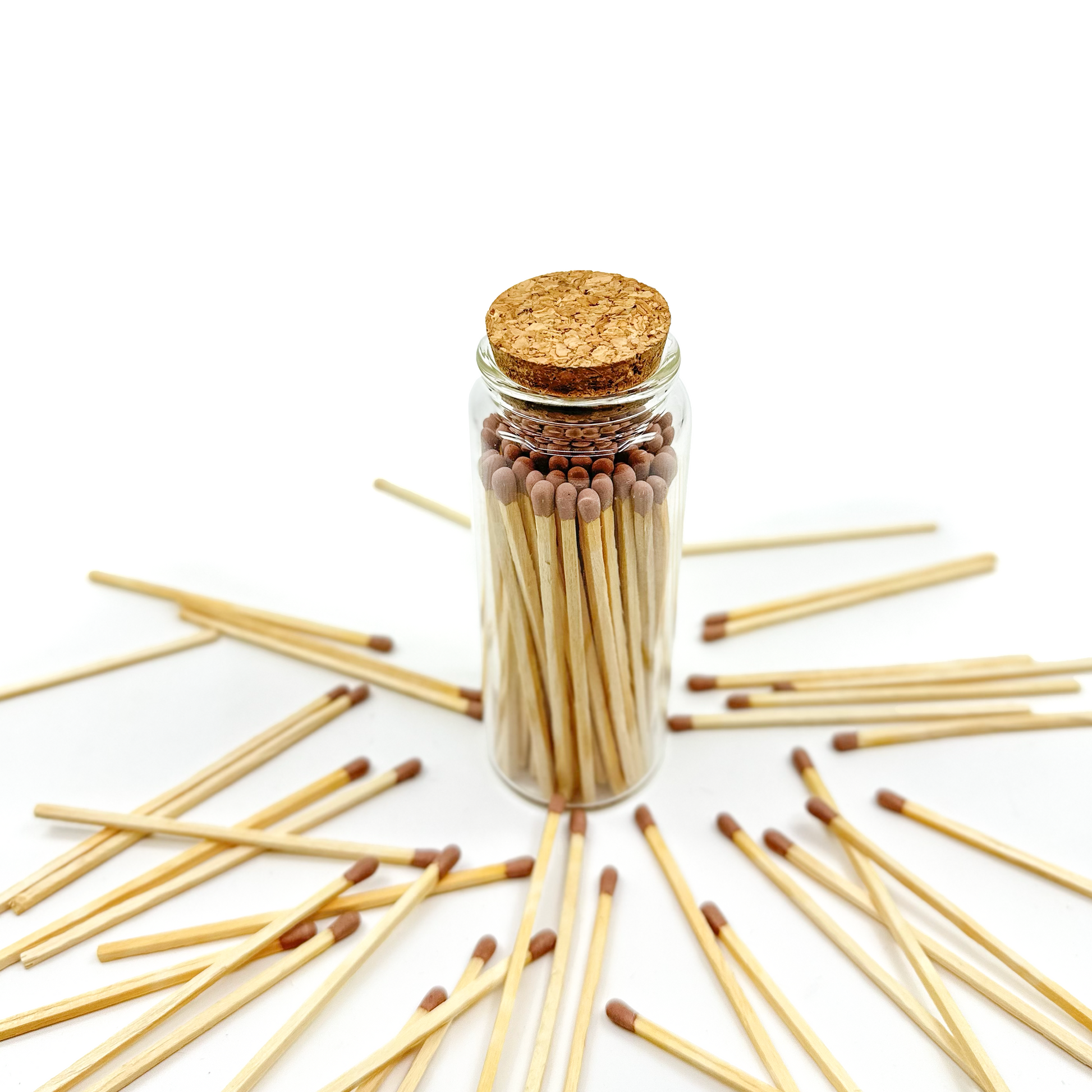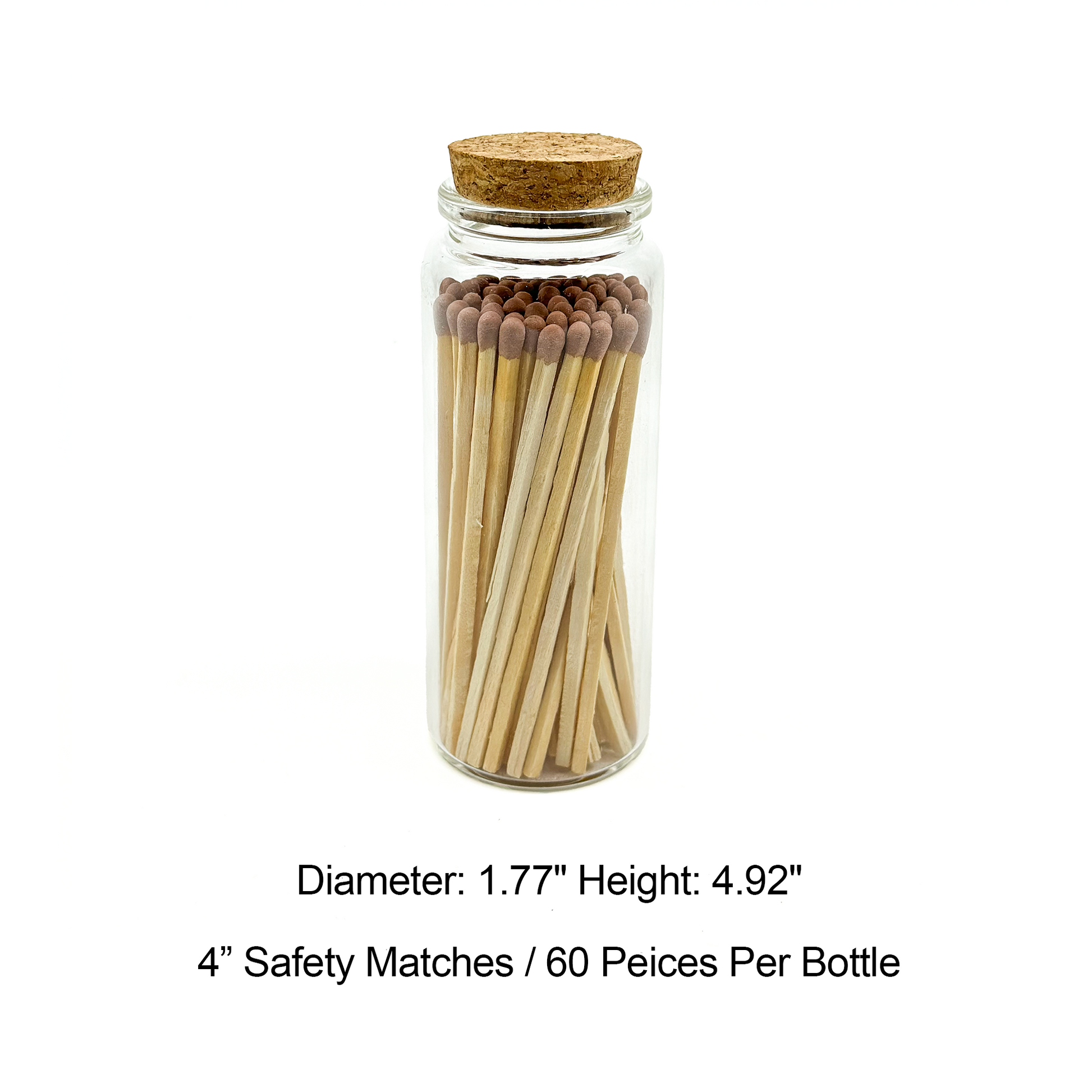 Brown Safety Matches in Jar - Strike On Bottle Glass Jar 4" Inch Matchsticks