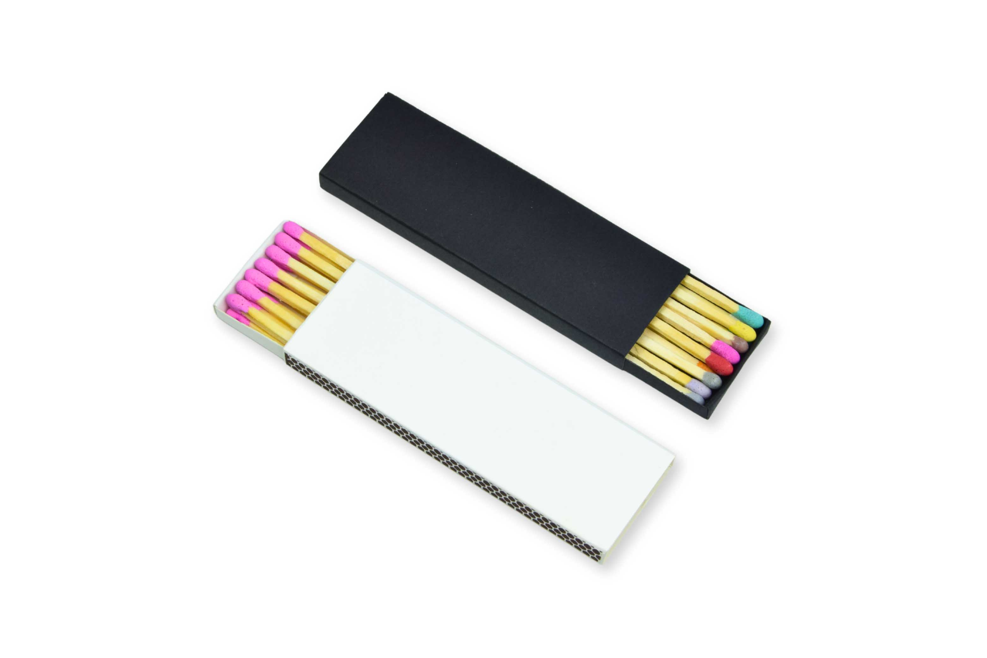 2" Inch Long Wooden Matchsticks in a Blank Matchbox with White / Black Matchboxes Colorful Tips - 20 Matchsticks - Gift- Wedding Favor