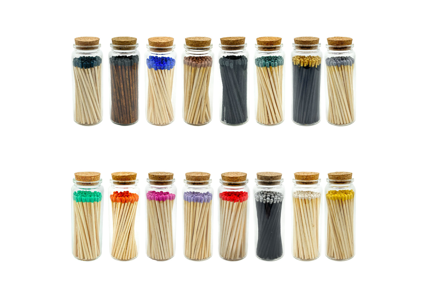 Introducing our exquisite match bottle jar. These finely crafted wooden matchsticks come in charming artisanal jars with cork caps, creating a delightful visual appeal. With an impressive selection of 15 tip colors to choose from, you can easily match these jars to your personal style or decor.